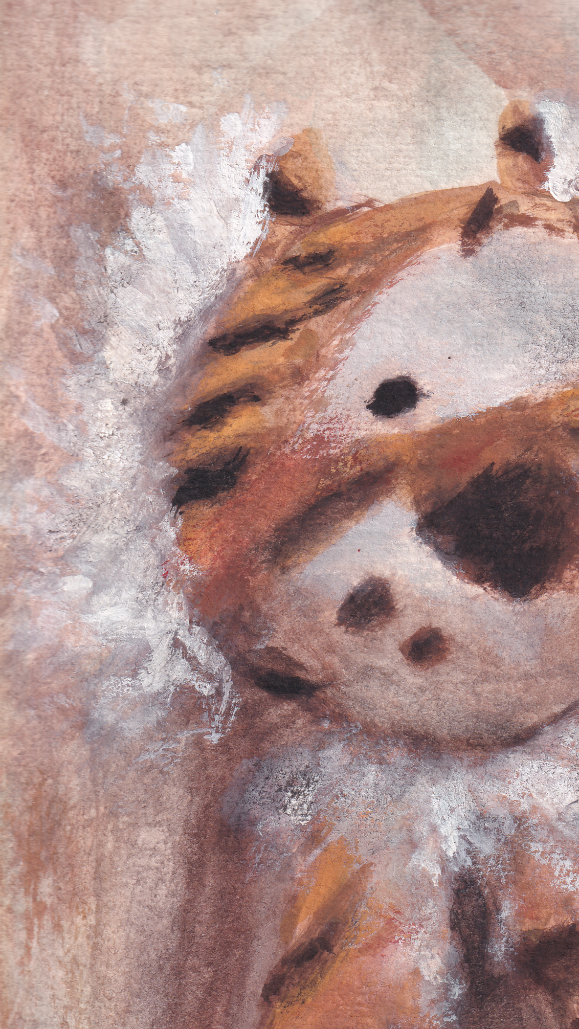 Tabby the tigress was my dog Enzo’s first toy. When she lost an eye, I realised I should paint her before she disappeared altogether.